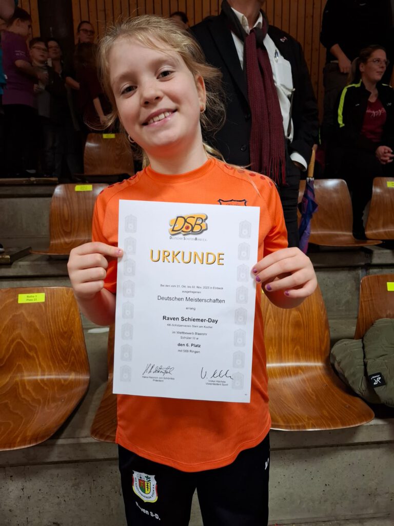 Mit beeindruckenden Ergebnissen konnten sich Raven Schiemer-Day am Samstag den 6.Platz in der Schülerklasse III weiblich sichern. Sie wiederholte mit diesem Ergebnis die Platzierung vom letzten Jahr.