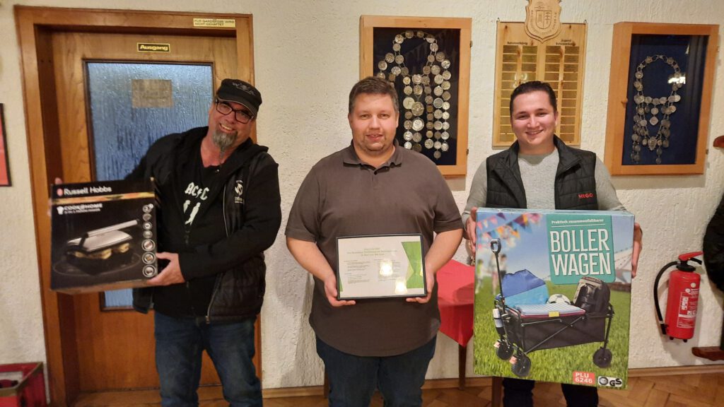 Den Sonderpreis für die meisten gemeldeten Mannschaften, einem Gutschein über 30Liter Bier (gespendet von der Fa. Getränke Müller, auch hier unser Dank) erhielt die Gruppierung der La Familia mit 9 Mannschaften.